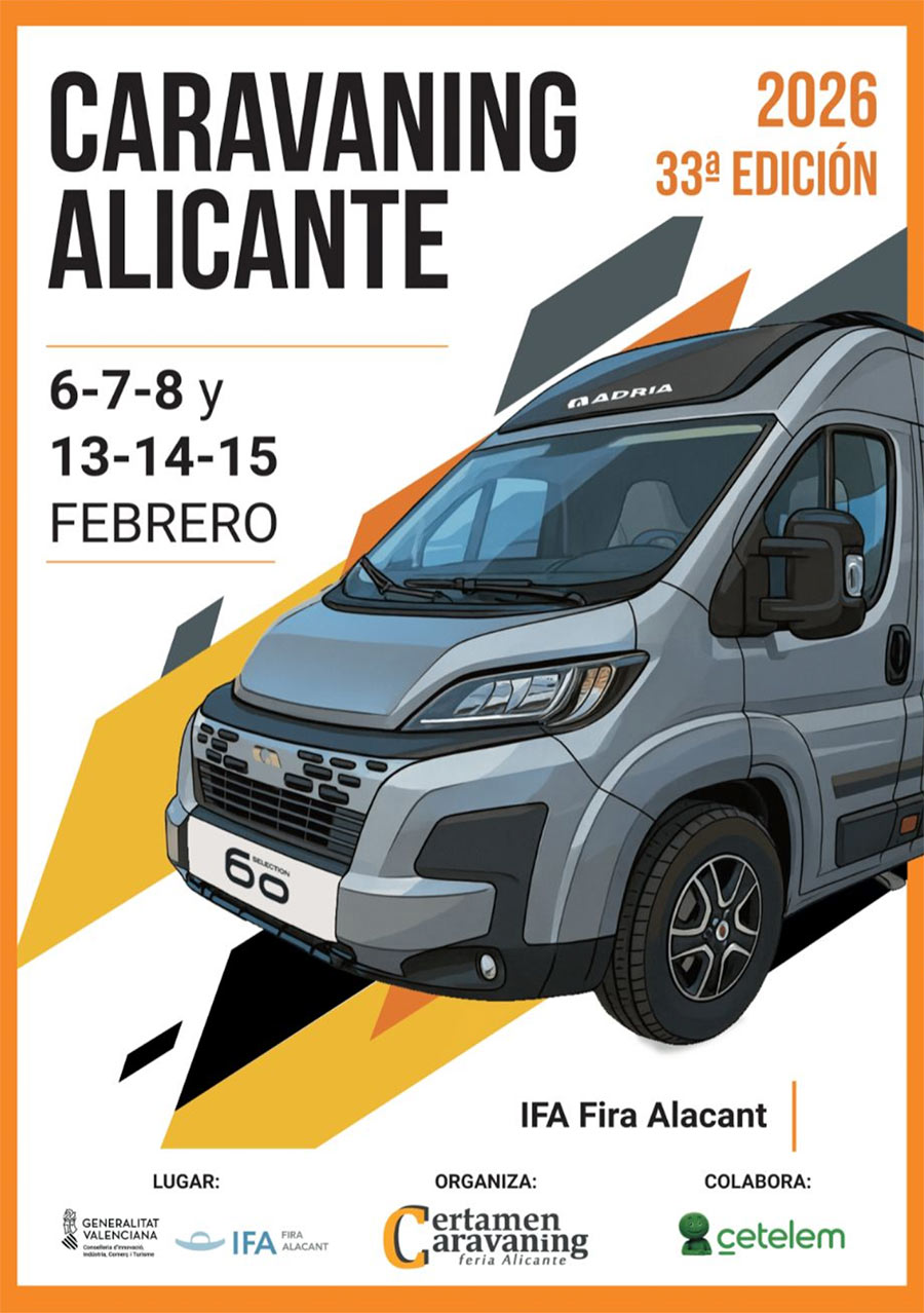 La 33ª edición de Caravaning Alicante se celebrará los días 6, 7, 8 y 13, 14, 15 de febrero de 2026 en el recinto IFA Fira Alacant, y contará con la presencia de ADRIA.